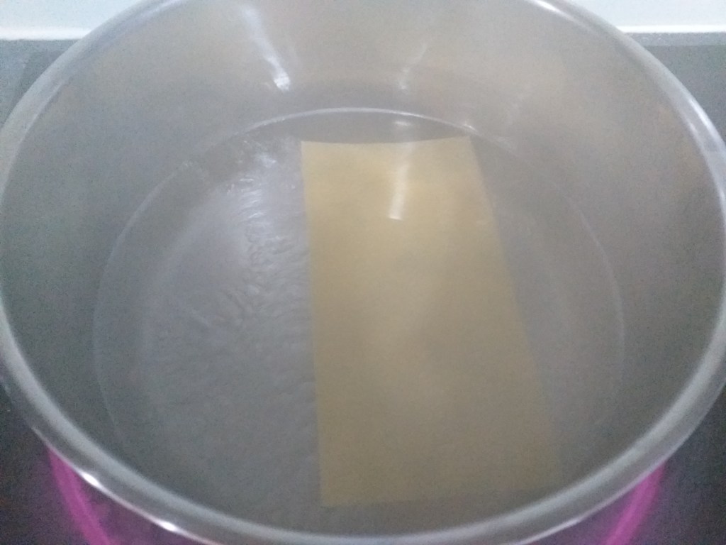 - What I did — I cooked the lasagna noodles one sheet at a time by putting it in boiling water for only about 2 minutes. Then I arranged each sheet in the pie dish straight away (see following images). It was a bit time consuming, but at least the noodles did not get stuck together.